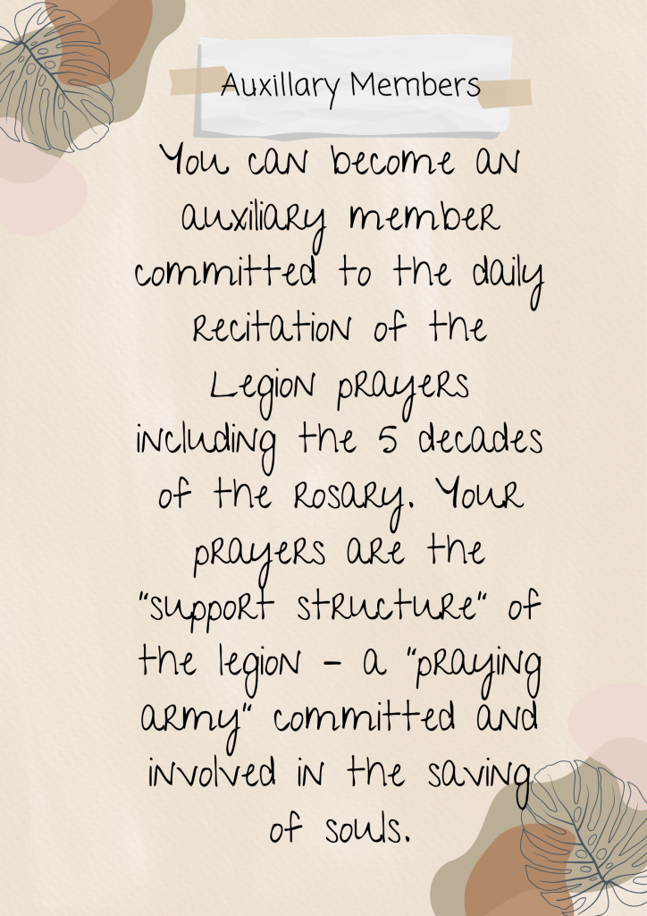 The Legion of Mary is a lay apostolic association of Catholics who, with the sanction of the Church and under the powerful leadership of Mary Immaculate, Mediatrix of All Graces, serve the Church and their neighbour on a voluntary basis in about 170 countries.